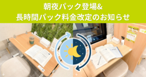 長時間パックの割引率を見直す一方で、特定の時間帯に集中して利用される方へ向けた「朝パック・夜パック」を新設いたしました。