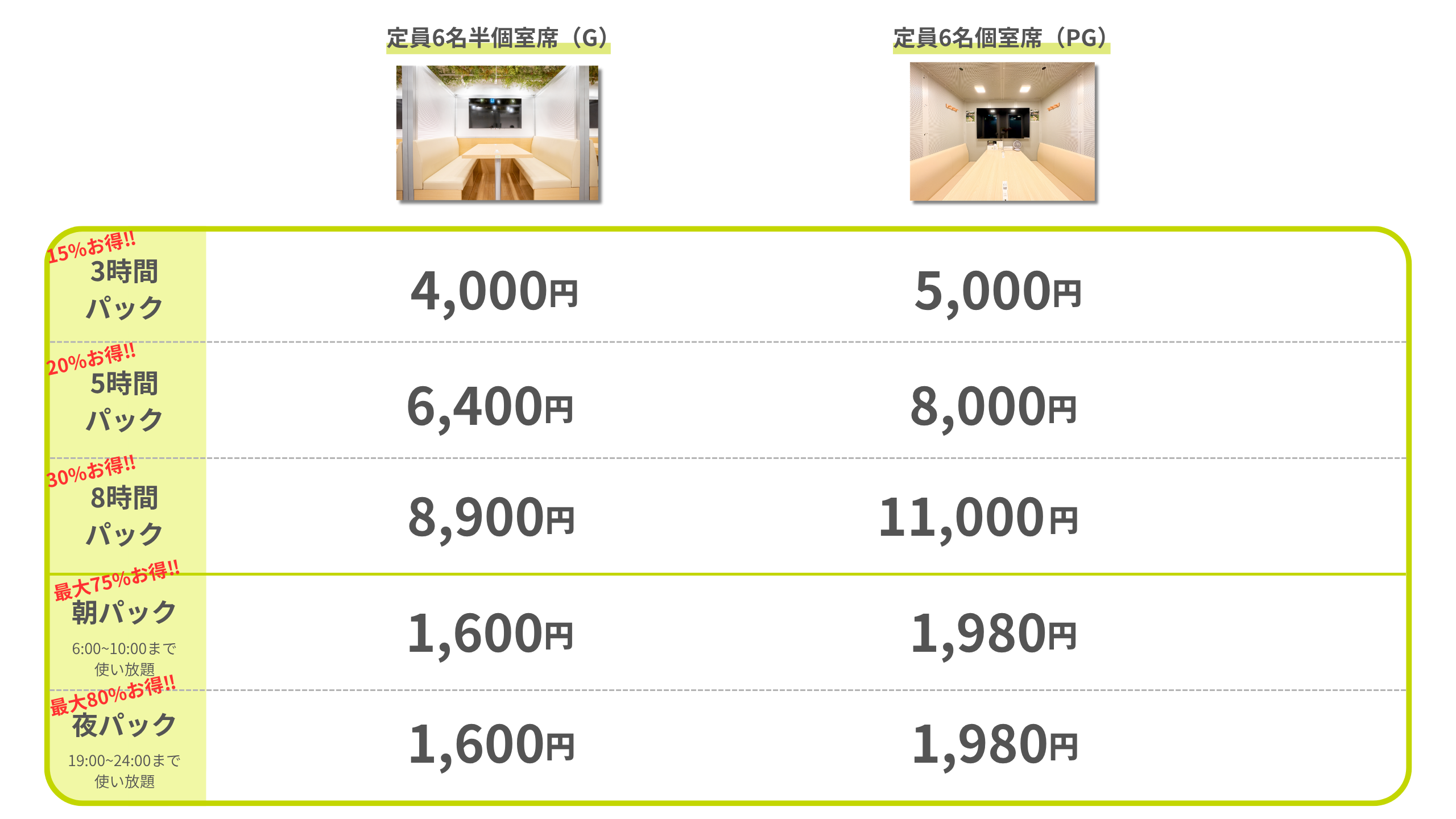 長時間パックの割引率を見直す一方で、特定の時間帯に集中して利用される方へ向けた「朝パック・夜パック」を新設いたしました。
