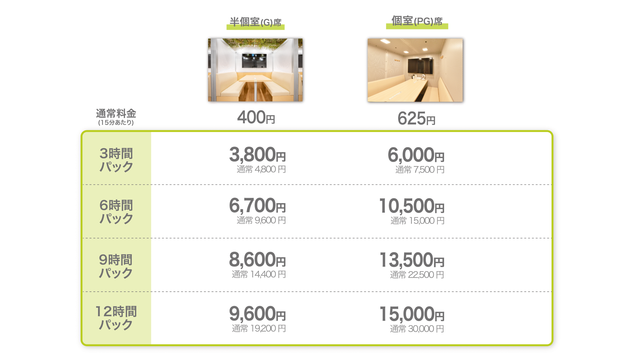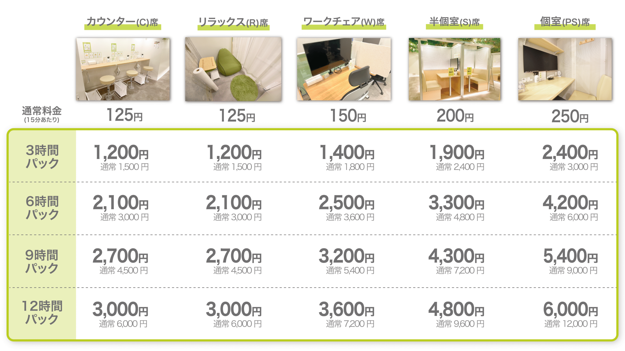 長時間の作業やじっくりと集中したい方向けに、12時間パックを新設しました。