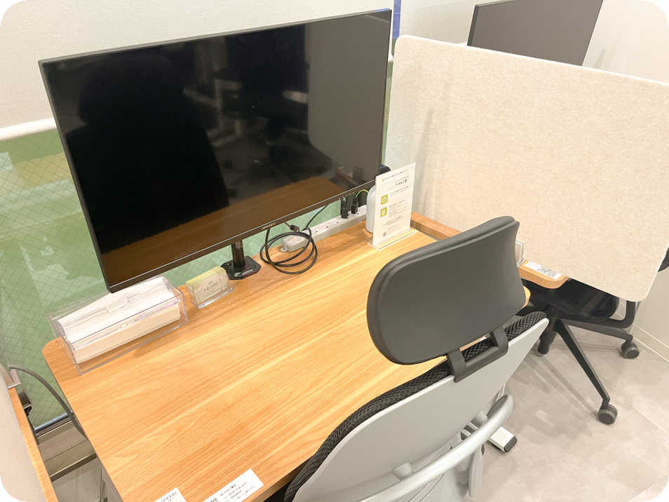残り5分前になりましたら、次のお客様のために、備え付きのアルコールとペーパーで机の清掃をお願いいたします。